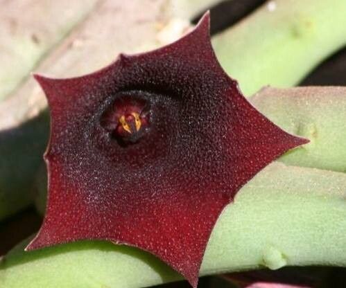 Star-shaped blooms, a fuzzy delight, can be yours! Propagate Huernia concinna stems in spring/summer!
