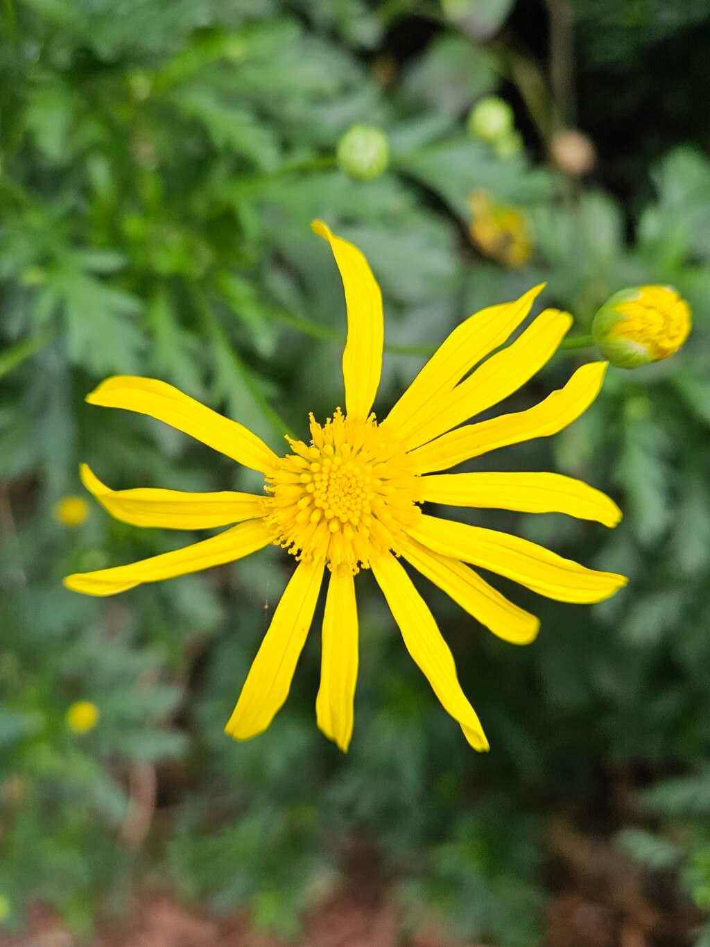 Euryops abrotanifolius, a garden darling whose yellow blooms and feathery foliage sing sunshine.